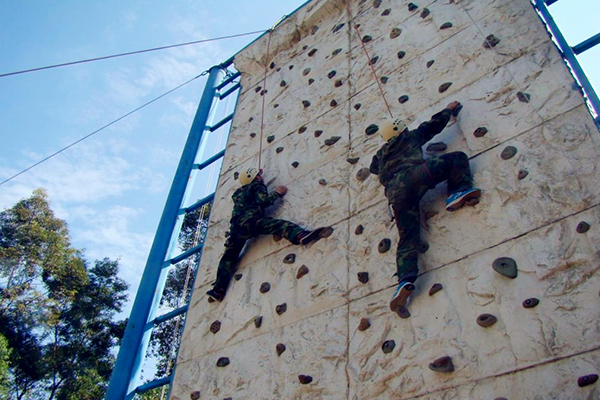 攀巖這個項目除了體能煅煉以外,其實最可貴的是在力爭向上的努力過程中,提升自我的肯定、增加自信心,使學員培養(yǎng)不怕苦、堅毅、